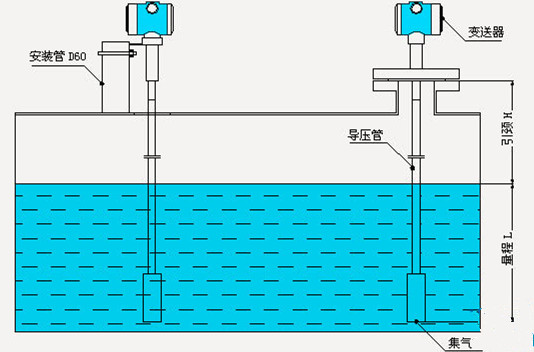 2,測(cè)量流量,或有混合液位時(shí),通常取直徑約45毫米的Φ鋼管(在不同高度的另一側(cè)的液流上打幾個(gè)孔,使水流入管內(nèi))固定在水中 ,那么投入式液位變送器可以在鋼管中使用。