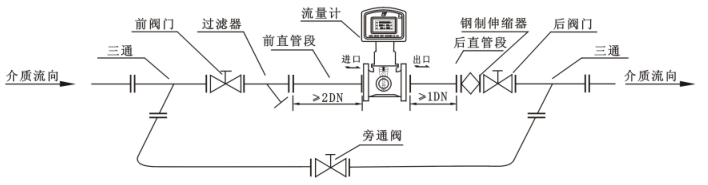 2、流量計(jì)安裝前,特別是新管道安裝或維修管道時(shí),應(yīng)先清洗管道,清除所有的爐渣、鐵銹等管道雜物。